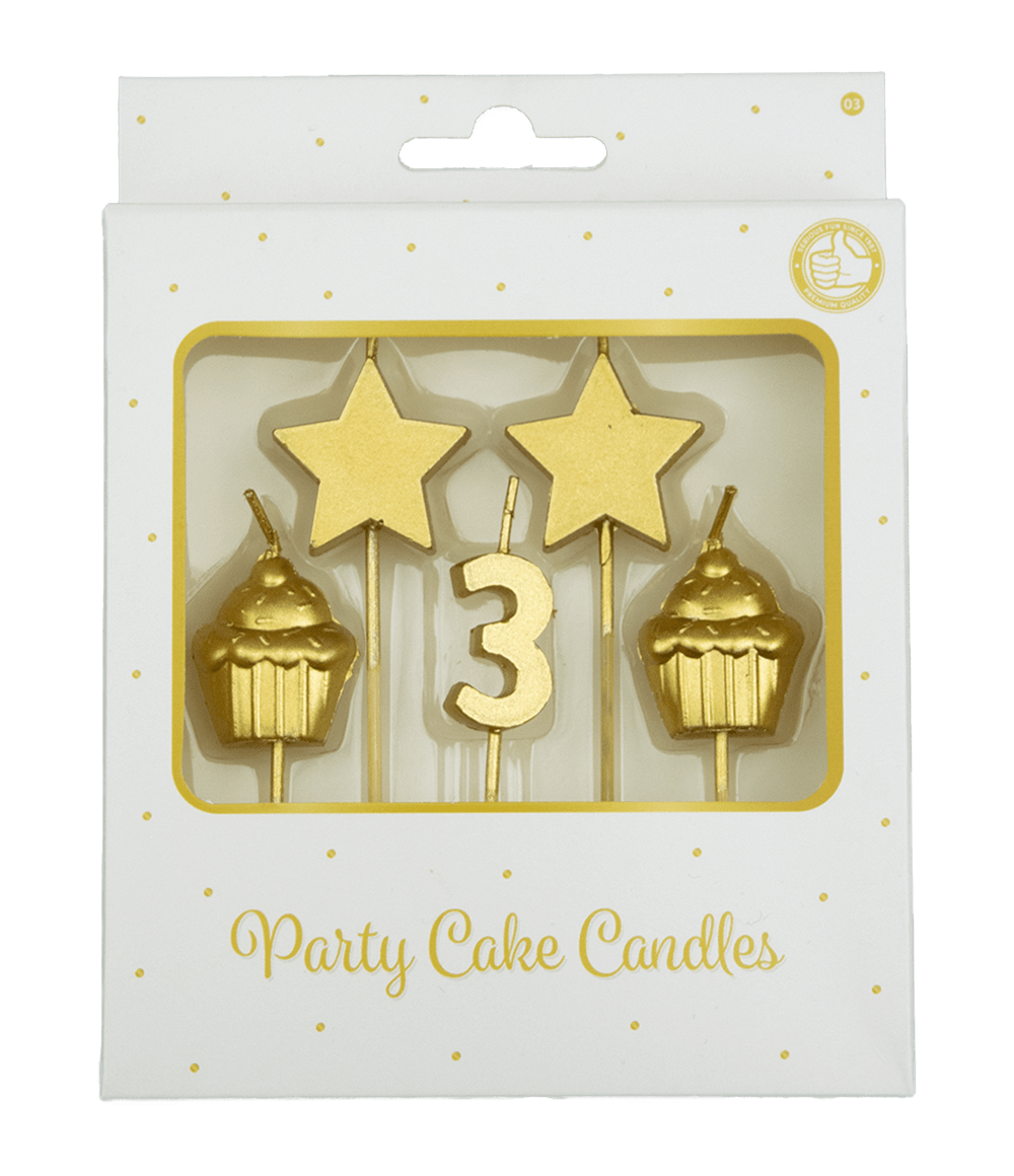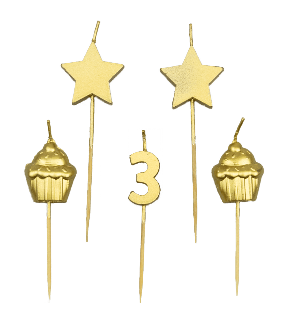 Kaarsjes 3 Jaar Cupcake Goud 17,5cm