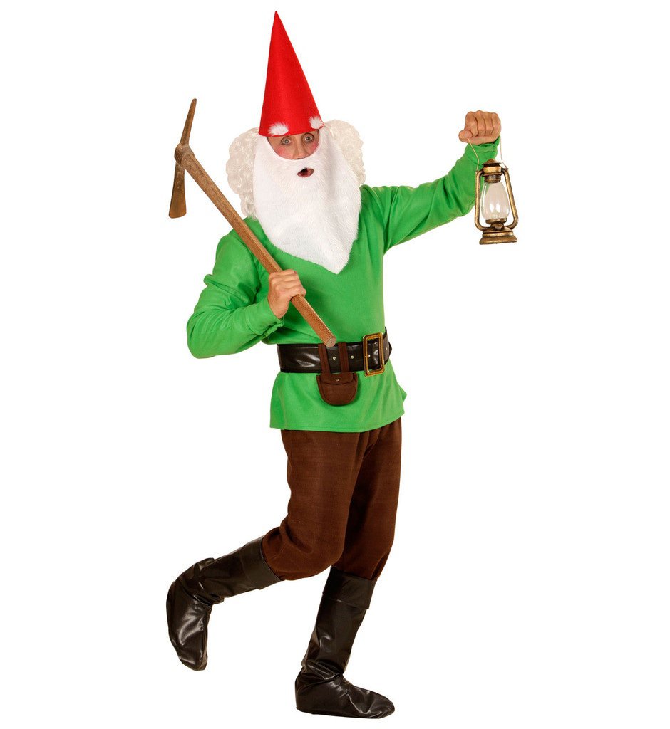 Inhoud: Broek, jas, riem met beurs, laarskappen, hoed met oren, wenkbrouwen, baard
