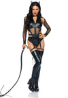 Laat je innerlijke schurk zien in het Wicked Kitty kostuum van Leg Avenue! Dit ultra-sexy kostuum bestaat uit een cut-out wetlook bodysuit met een diep V-decolleté en een rits aan de voorkant, extra cheecky snit, visnet mouwen en een kattenoor haarband. Het is de perfecte combinatie van ondeugend en sexy, met een vleugje BDSM flair voor de ultieme bad girl look! 😈✨
