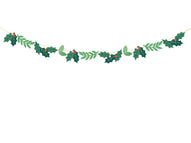 Maretak slinger van papier in groene kleur, bevat 11 elementen. Lengte ca. 1,5 m, lengte touw ca. 4 m. Doe-het-zelfproduct. Materiaal: Papier niet gecoat met folie en niet gevernist - 80%, Polyester - 20%.