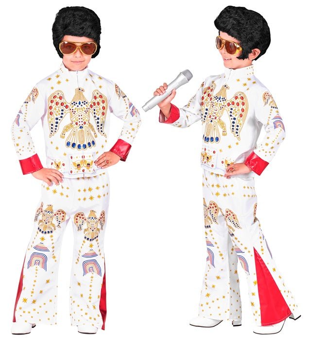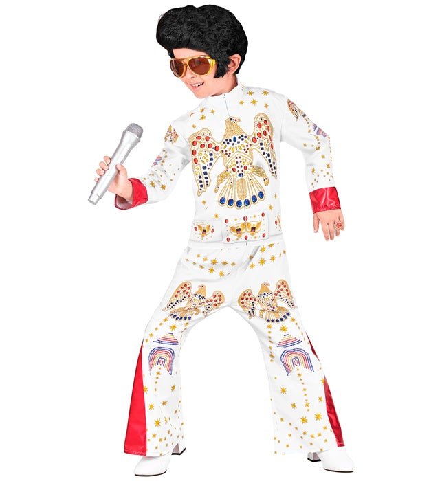 Een stoer en herkenbaar kostuum waarmee elk kind zich even de King of Rock voelt.