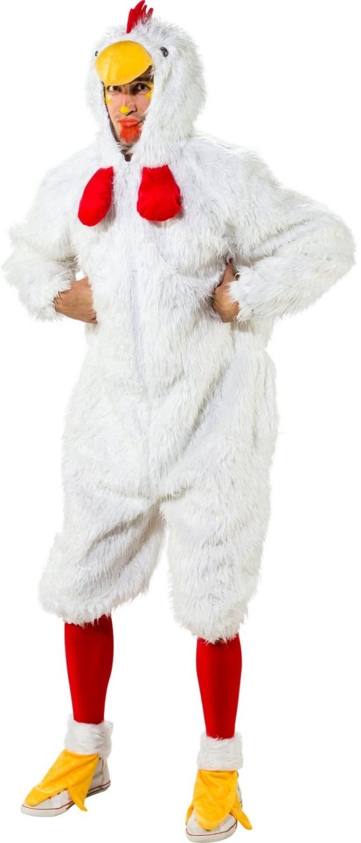 Val gegarandeerd op tijdens carnaval, een vrijgezellenfeest of themafeest met dit grappige kippenkostuum. De comfortabele jumpsuit bedekt het hele lichaam en is compleet met bijpassende accessoires voor een herkenbare en humoristische look.