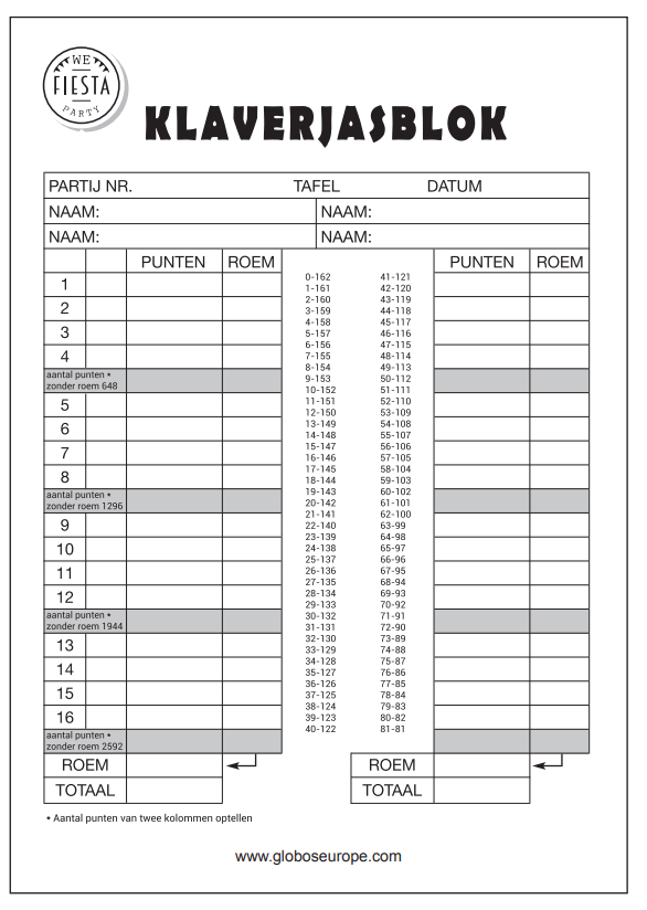 Inhoud: Klaverjas Scoreblok 21cm 50 pagina's