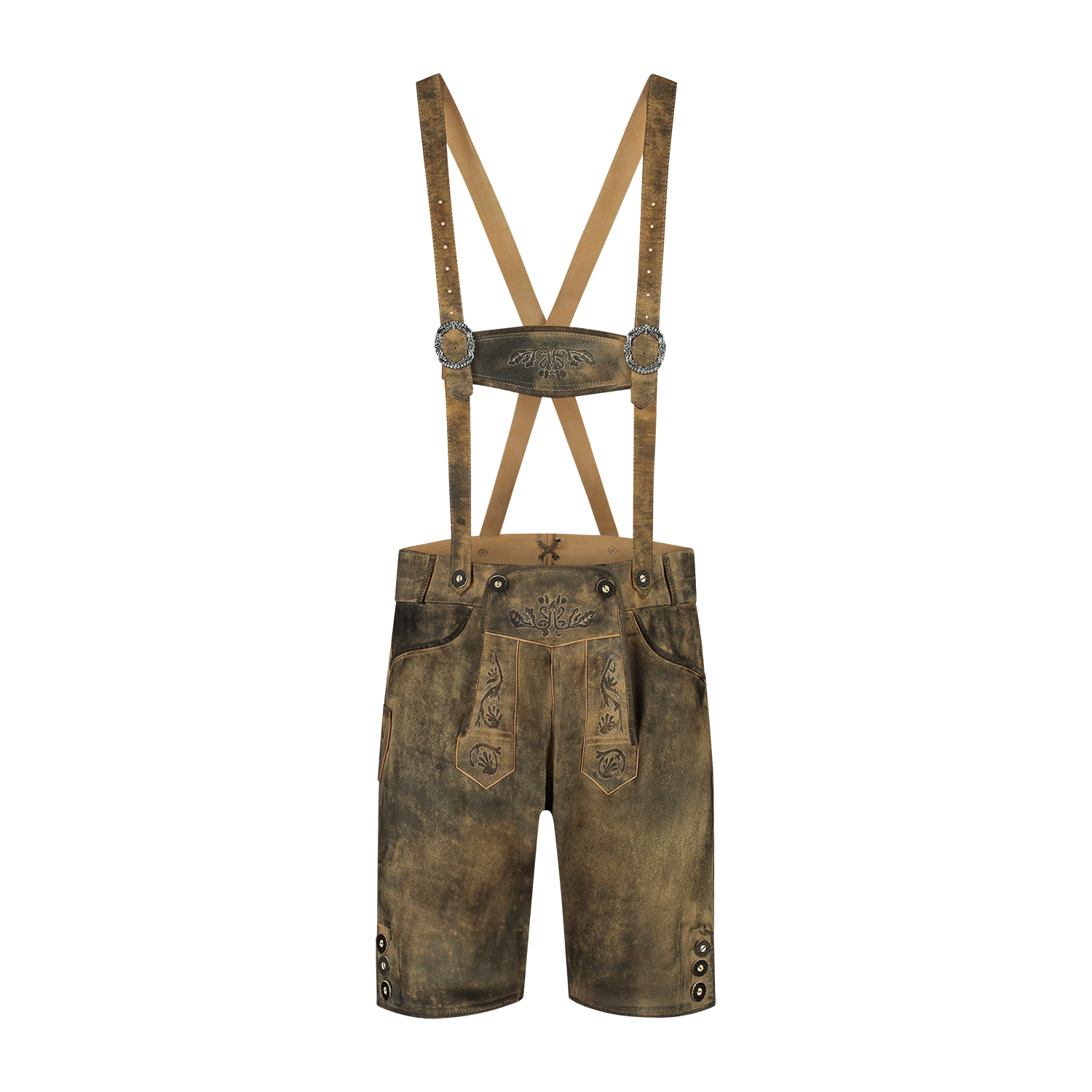 Trachten broek voor heren, kort, print met uitgebreide traditionele borduurwerk.
