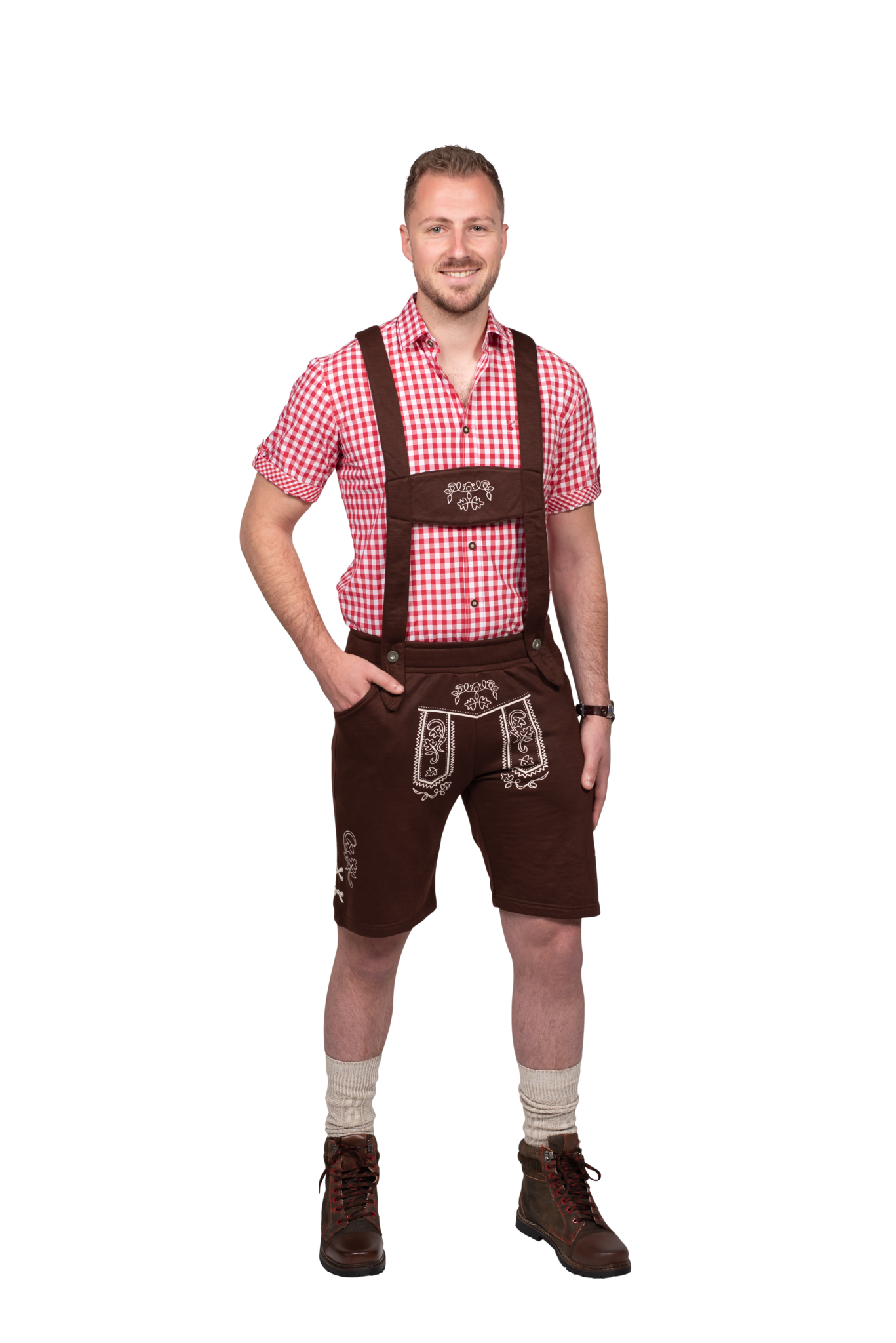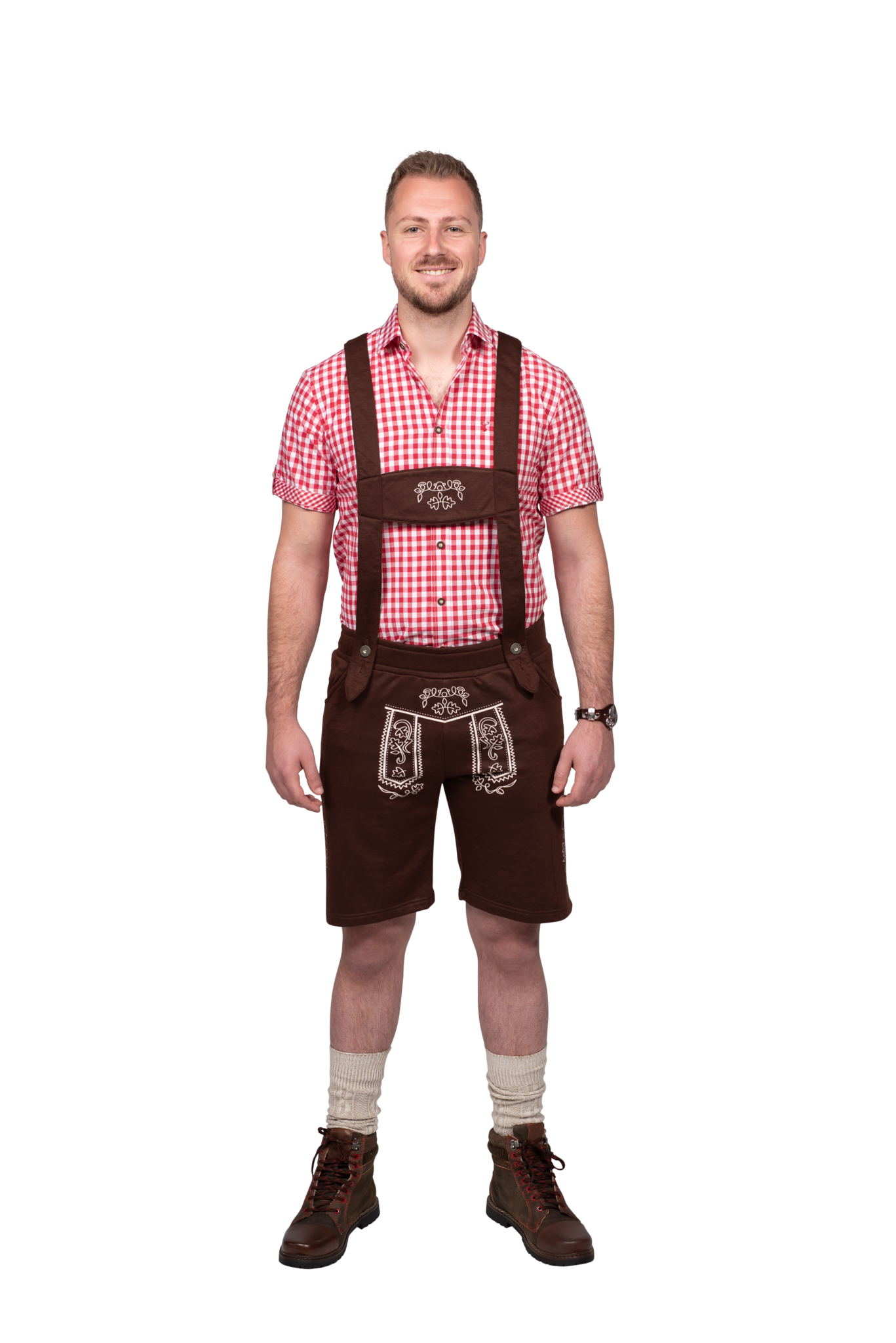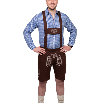 Traditionele broek voor heren, kort, met borduursel print en verstelbare H-bandjes.