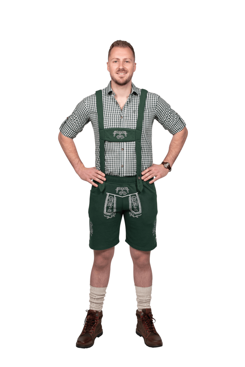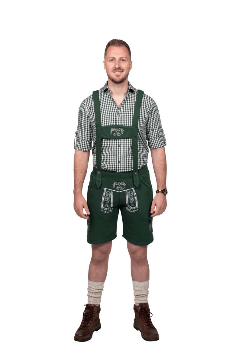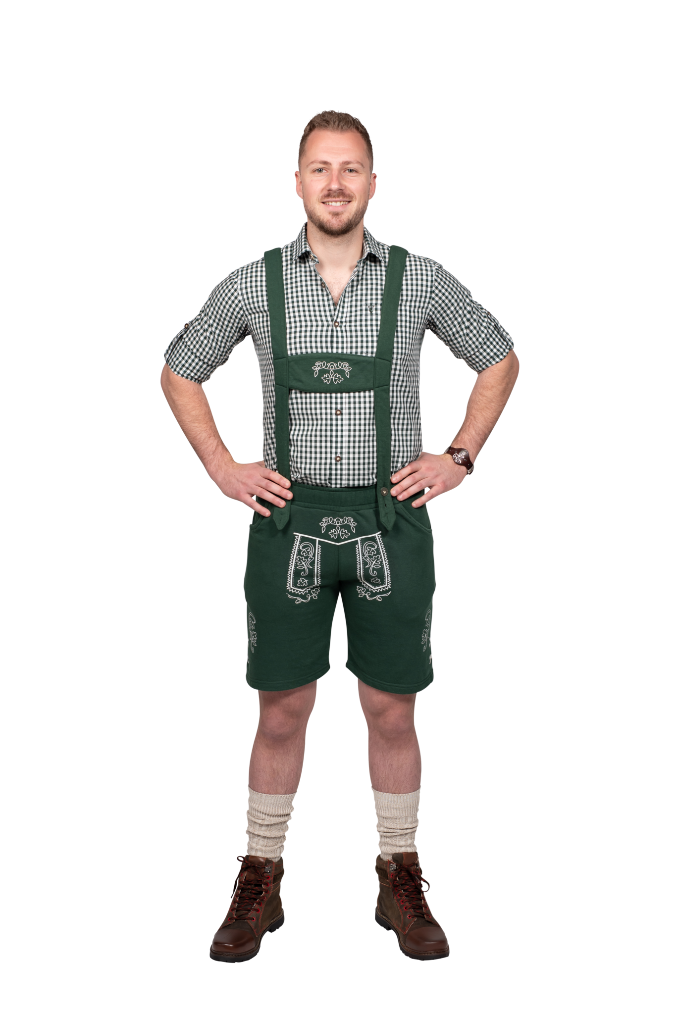 Traditionele broek voor heren, kort, met borduursel print en verstelbare H-bandjes.