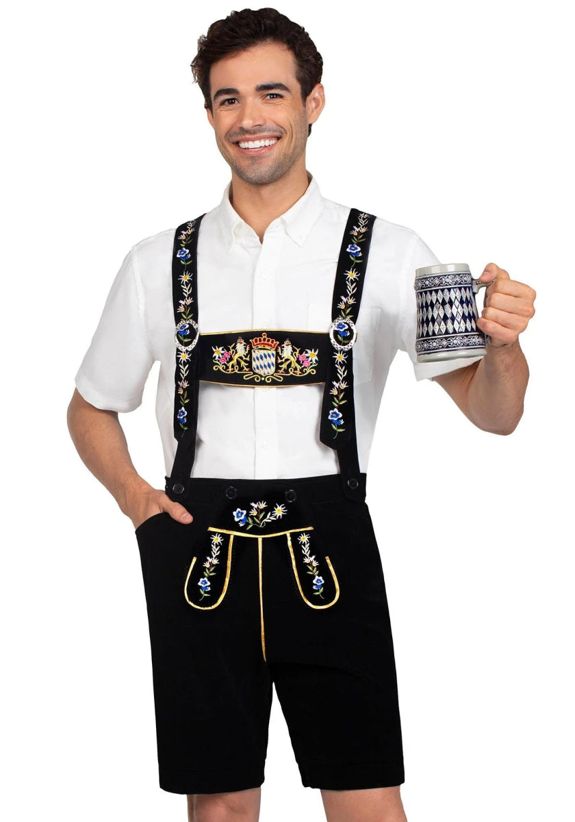 Geïnspireerd door traditionele Duitse kledij, heeft deze klassieke Oktoberfest-outfit geborduurde stretchfluwelen lederhosen met zakken en authentieke slabbretels. Voeg gewoon je eigen shirt en kniekousen toe om de look compleet te maken. 🎉🍺