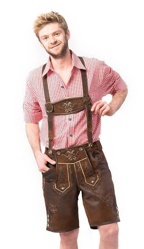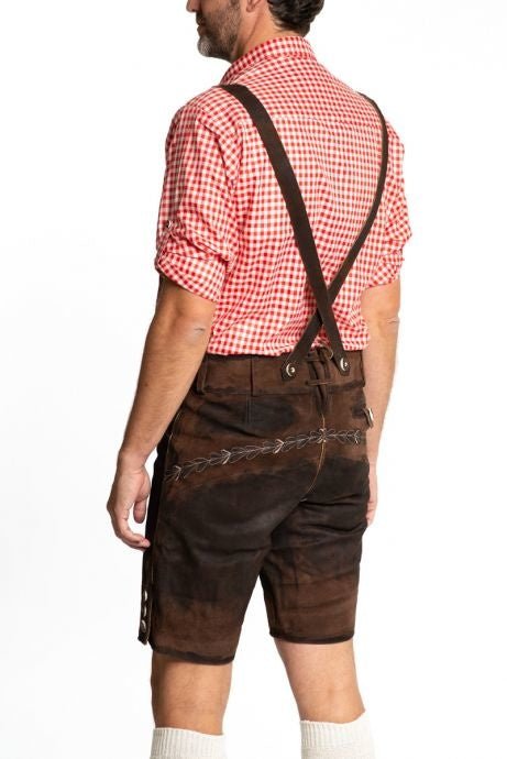 Lederhose Leer Kort Donkerbruin Gestikt en Bretels