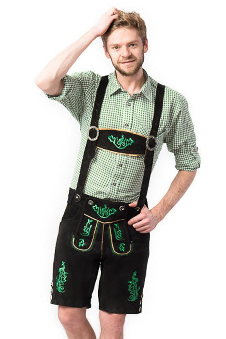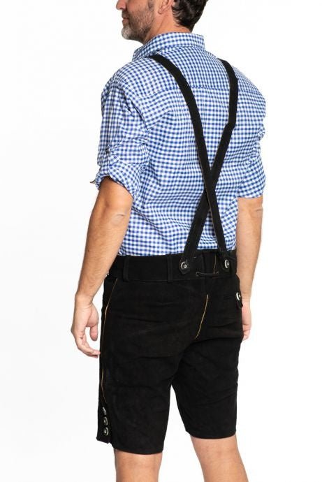 Lederhose Leer Kort Zwart Gestikt en Bretels
