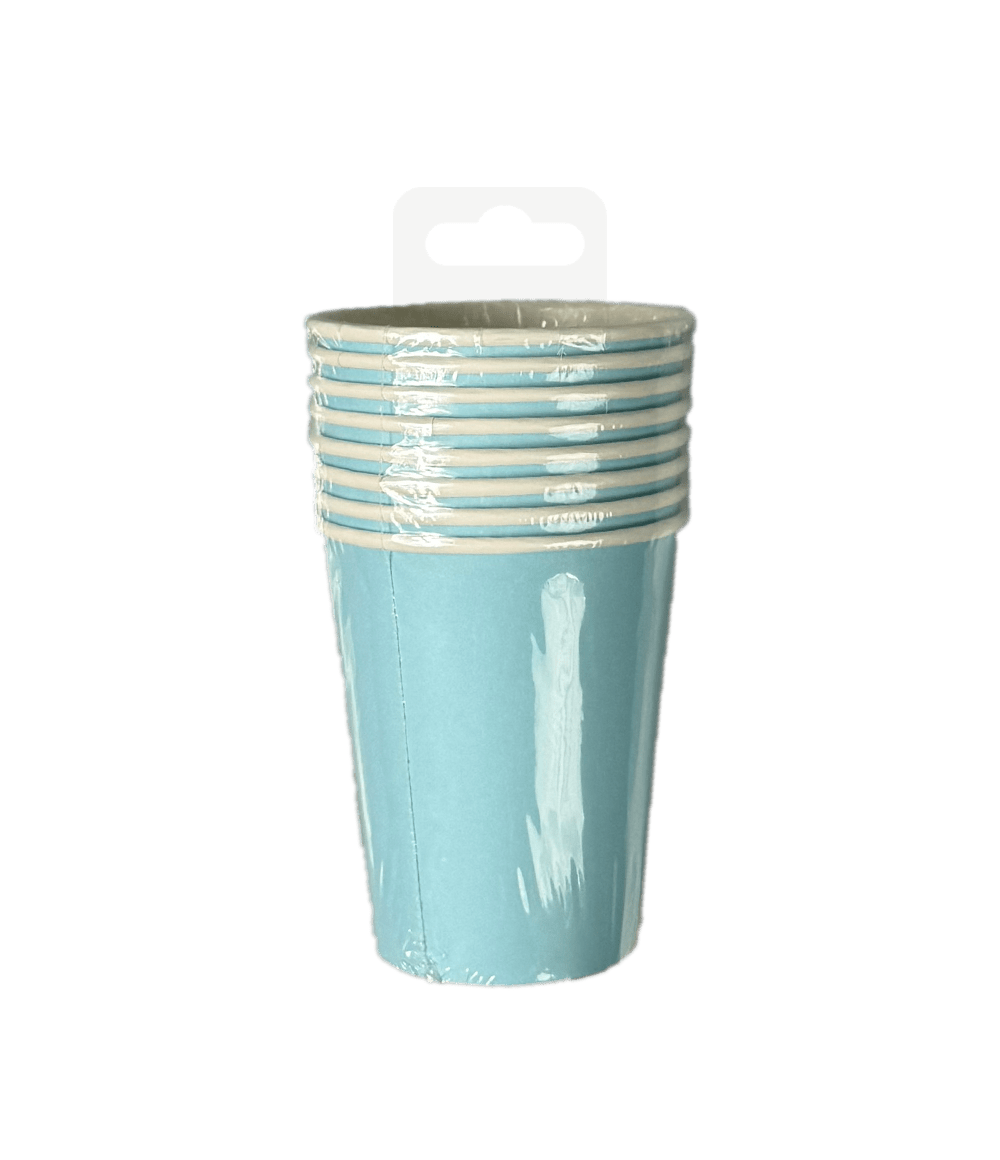 De Cups - Pastel blue zijn de perfecte decoratie artikelen op een feestje waar de kleur pastel blauw het thema is. Deze bekertjes zijn 8,5 x 7cm, zitten per 8 verpakt en passen perfect bij de overige pastel blauwe artikelen zoals de confetti, servetten, bordjes, tafelkleden, snackboxes en vlaggenlijn. Presenteer deze items bij elkaar, zodat het voor de klant direct duidelijk is waar deze collectie uit bestaat. Deze bekertjes zijn van papier, wat het tot een milieuvriendelijke keuze maakt!