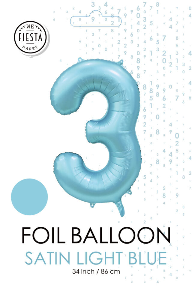 Lichtblauwe Cijfer Ballon 3 Jaar Glans 86cm