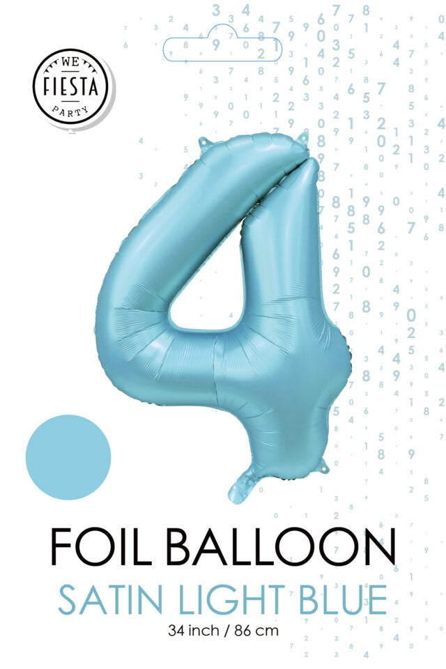 Lichtblauwe Cijfer Ballon 4 Jaar Glans 86cm