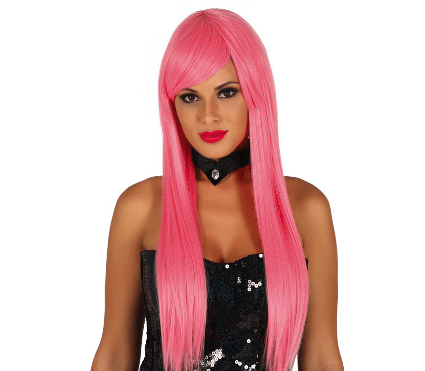 Lichtroze Pruik Lang Haar