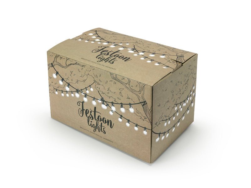 LED Festoon lampjes, helder op zwart draad, lengte draad met lampjes circa 5 meter, extra draad circa 3 meter, 10 ronde lampjes, warm witte kleur van het licht. Geschikt voor zowel binnen als buiten gebruik. Lampjes kunnen niet worden aangesloten op lichtsets. Bevat geen UK stekker.