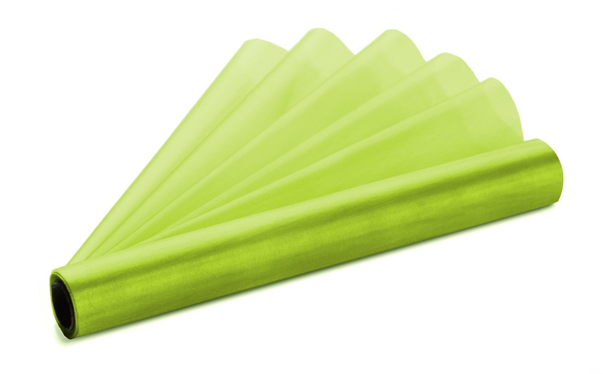 Inhoud: Organza Plain, lichtgroen, grootte 0.36x9 meter. (1 st. / 9 lm)