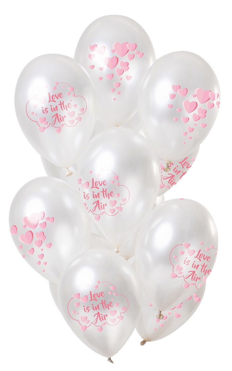 Ballonnen 'Love is in the air' Metallic 30cm - 12 stuks. Inhoud: 12 latex ballonnen. Kleur: Roze. Bijvoorbeeld te gebruiken tijdens de volgende feestgelegenheid/feestgelegenheden: Valentijnsdag, Bruiloft. Elke ballon is 12 inch/30 cm. Het artikel is gemaakt van latex.