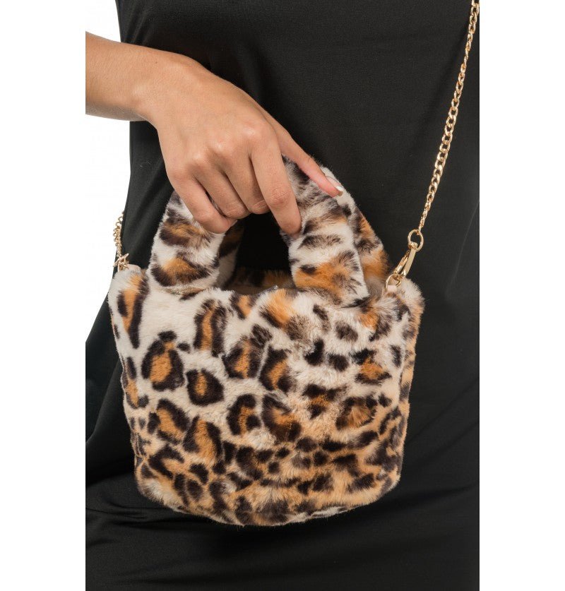 Voeg een stijlvolle en speelse touch toe aan elke outfit met deze handtas van imitatiebont in luipaardprint, perfect voor dagelijks gebruik, themafeesten of verkleedmomenten.