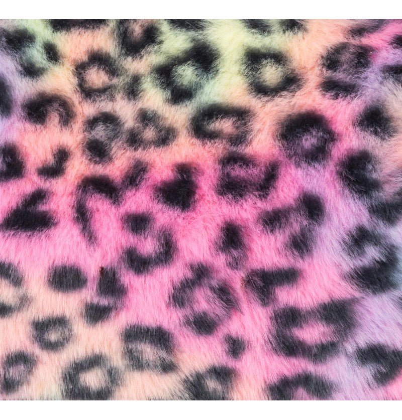 Voeg een speelse en kleurrijke touch toe aan elke outfit met deze handtas van imitatiebont in multicolor luipaardprint, perfect voor dagelijks gebruik, themafeesten of verkleedmomenten.