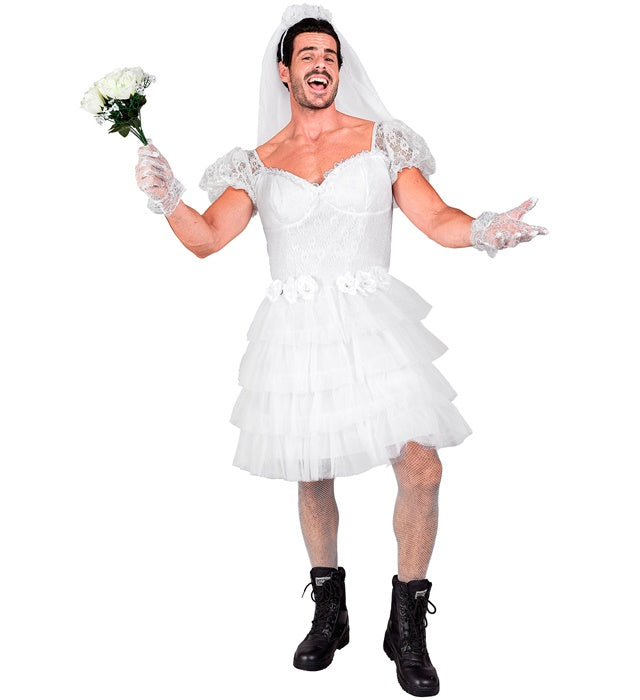 • Humoristisch verkleedkostuum voor heren in bruidenthema
