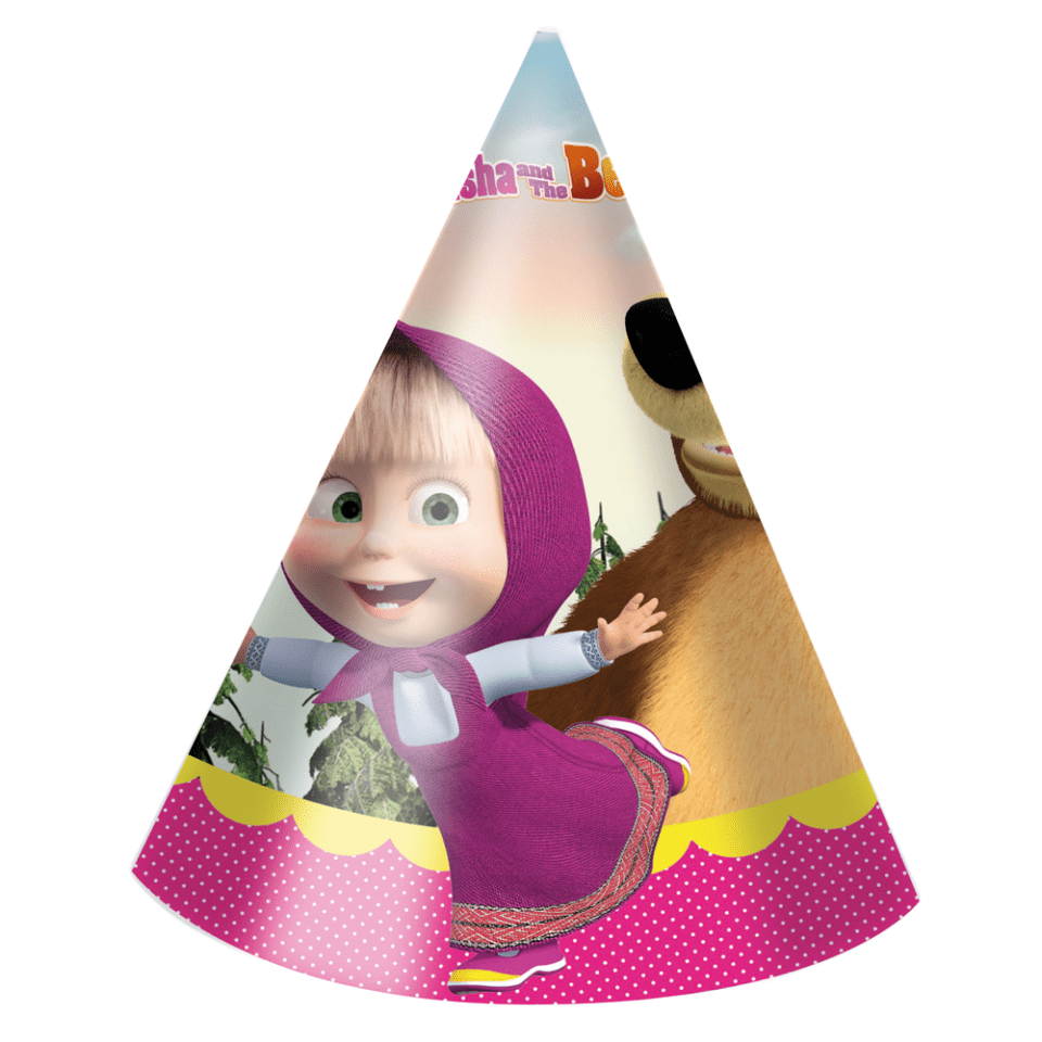 Verpakkingsinhoud: Masha En De Beer Feesthoedjes 6st