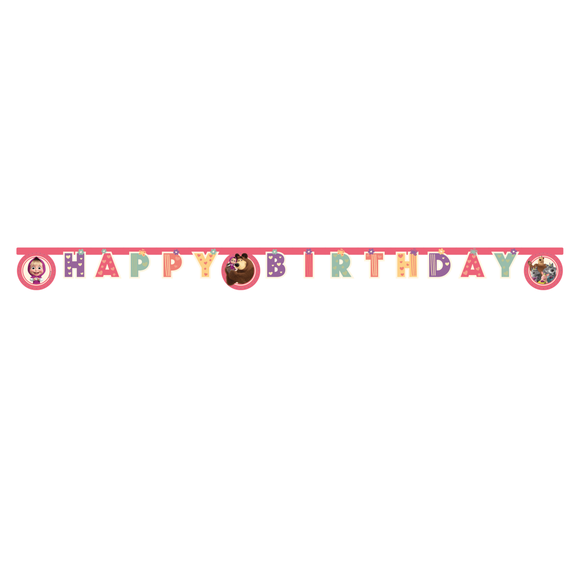 Vrolijke Masha en de Beer letterslinger, perfect om elke verjaardag of kinderfeestje extra feestelijk te maken. Dankzij de kleurrijke print brengt deze slinger direct een vrolijke sfeer in de ruimte.
