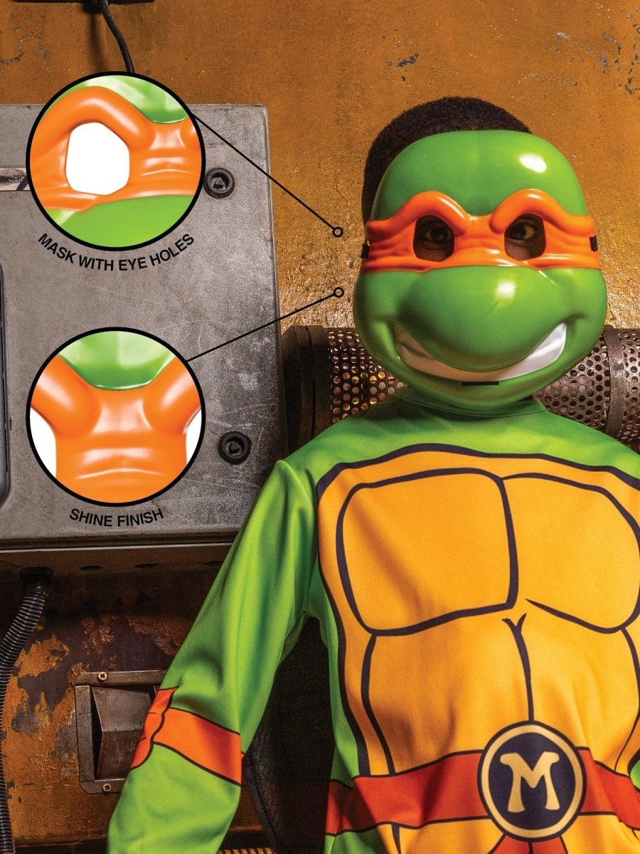 Maak de Michelangelo-look van je kind compleet met dit kleurrijke en speelse halfmasker! Het masker vangt perfect de vrolijke en avontuurlijke geest van de Ninja Turtle en voegt een leuke, fantasierijke touch toe aan het kostuum. Ideaal voor jonge fans die de persoonlijkheid van Michelangelo tot leven willen brengen.