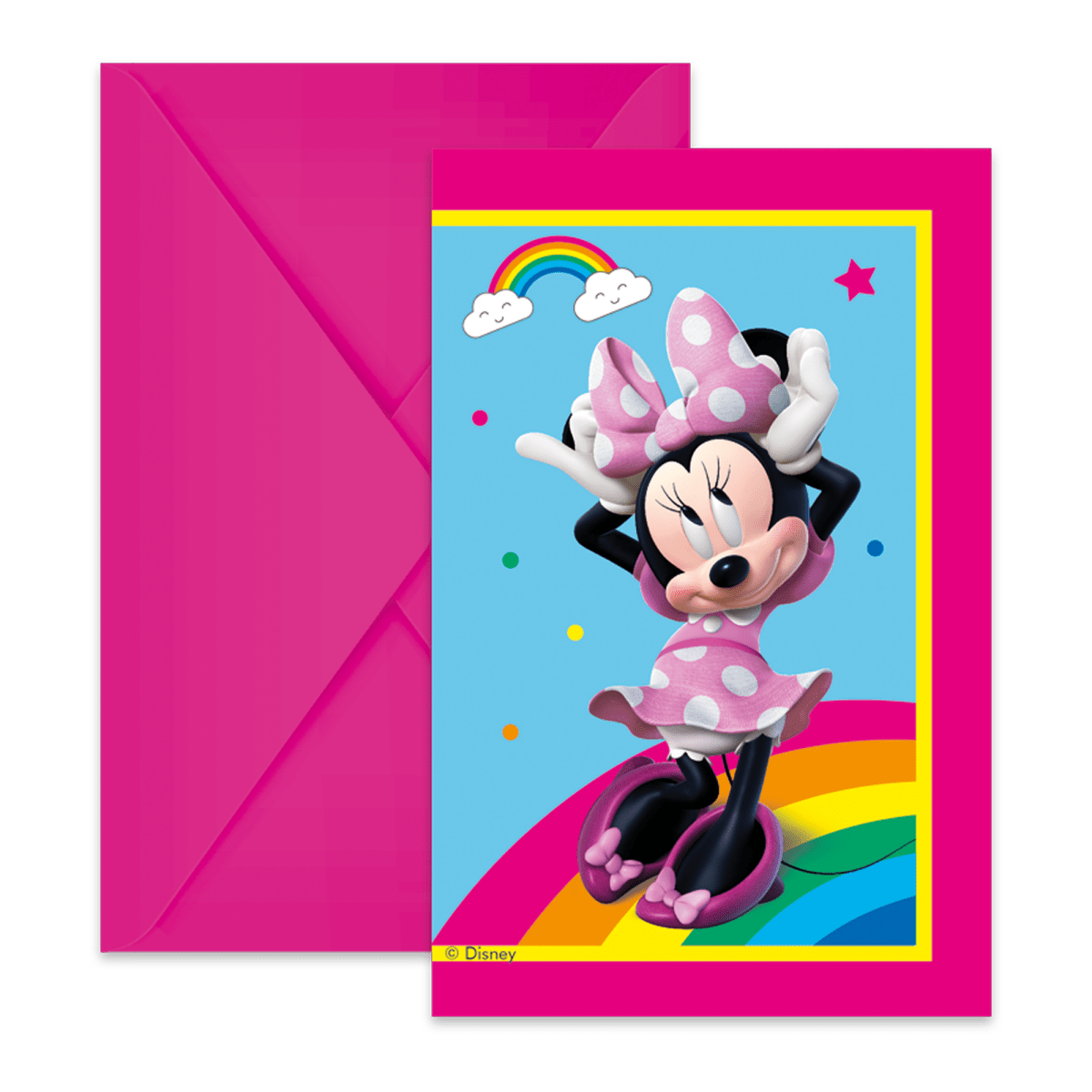 Verpakkingsinhoud: Minnie Mouse uitnodigingen en enveloppen