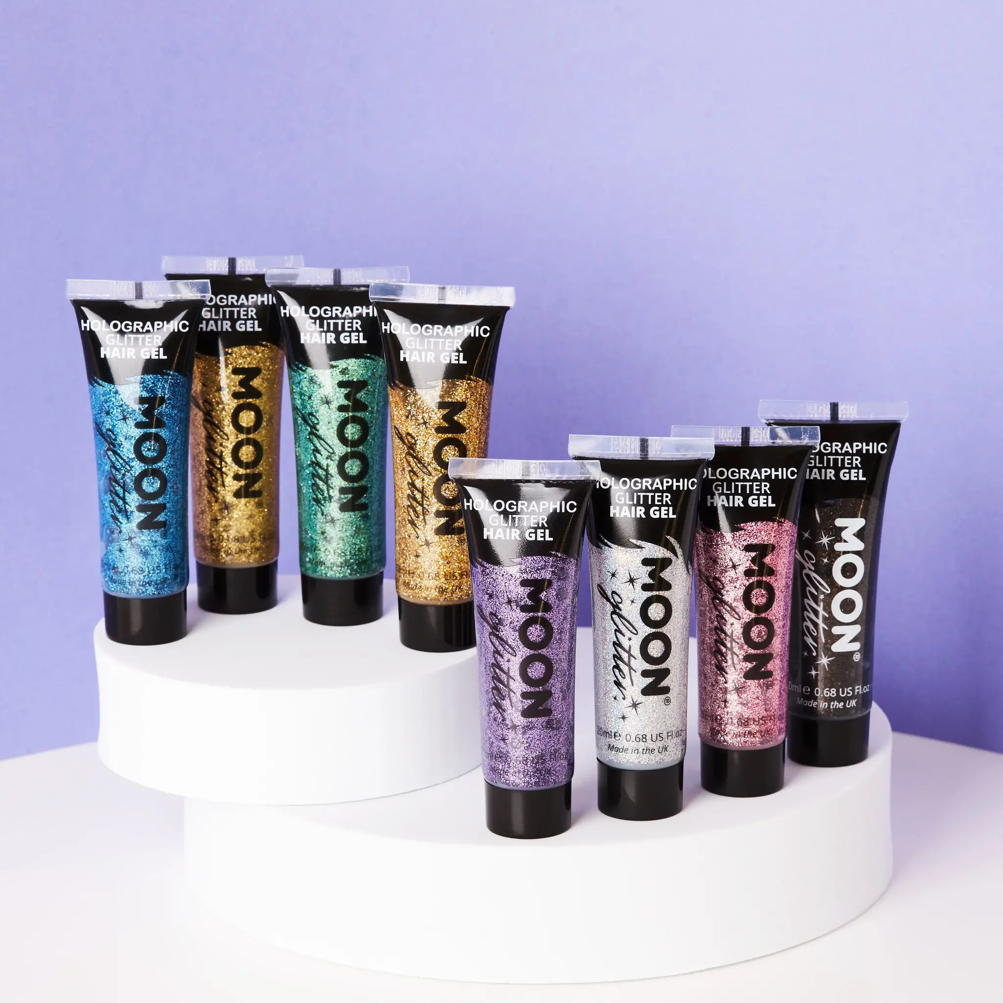 Creëer ongelofelijke glitterstijlen met Moon Glitter Holographic Hair Gel. Onze gels geven een stevige hold en zijn ontworpen om de hele nacht te blijven zitten.