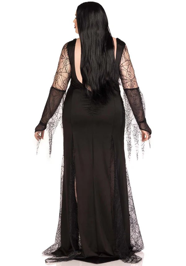 Laat je mysterieuze kant stralen in het betoverende Sexy Morticia kostuum! Dit verleidelijke ensemble bestaat uit een prachtige jurk met fonkelende pailletten, een opvallende gerimpelde achterkant, sierlijke spinnenwebmouwen en een dramatische tentakelrok met hoge split. Perfect voor een onvergetelijke Halloween-look waarmee je een spookachtige en glamoureuze indruk achterlaat! 🕷️🌙