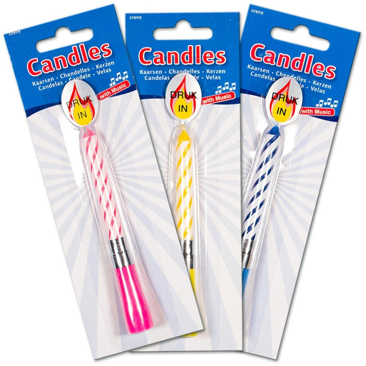 Kaarsje met Muziek Assorti. Inhoud: 1 kaars. Kleur: Meerkleurig. Bijvoorbeeld te gebruiken tijdens de volgende feestgelegenheid/feestgelegenheden: Kinderfeestje en Verjaardag. Afmetingen: 12 x 1 cm. Het artikel is gemaakt van wax.