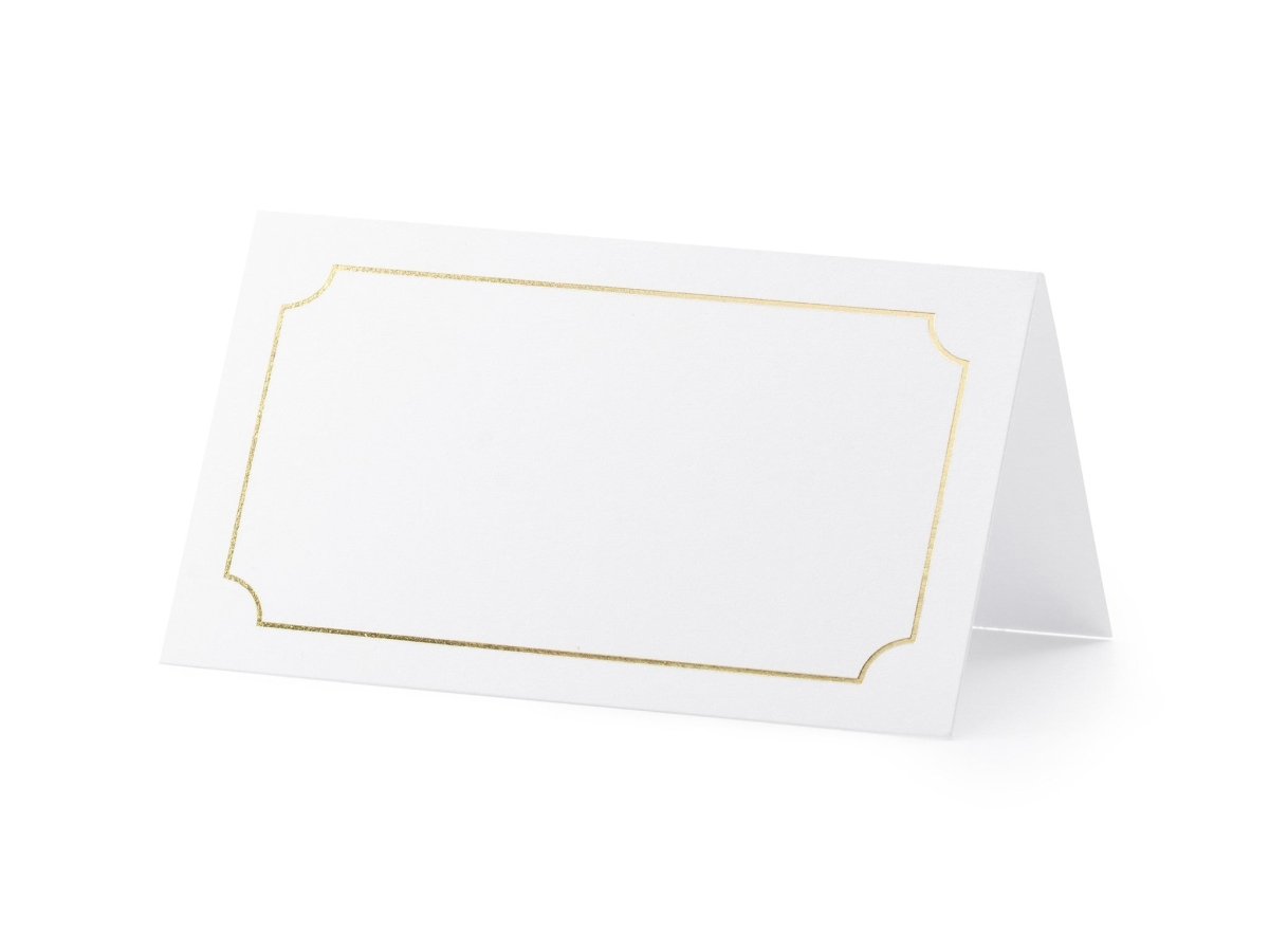 Inhoud: Plaats kaarten gemaakt van wit papier met goud metalen frame, de grootte na het monteren van ca.. 9,5 x 5,5 cm. (1 PKT / 10 st.)