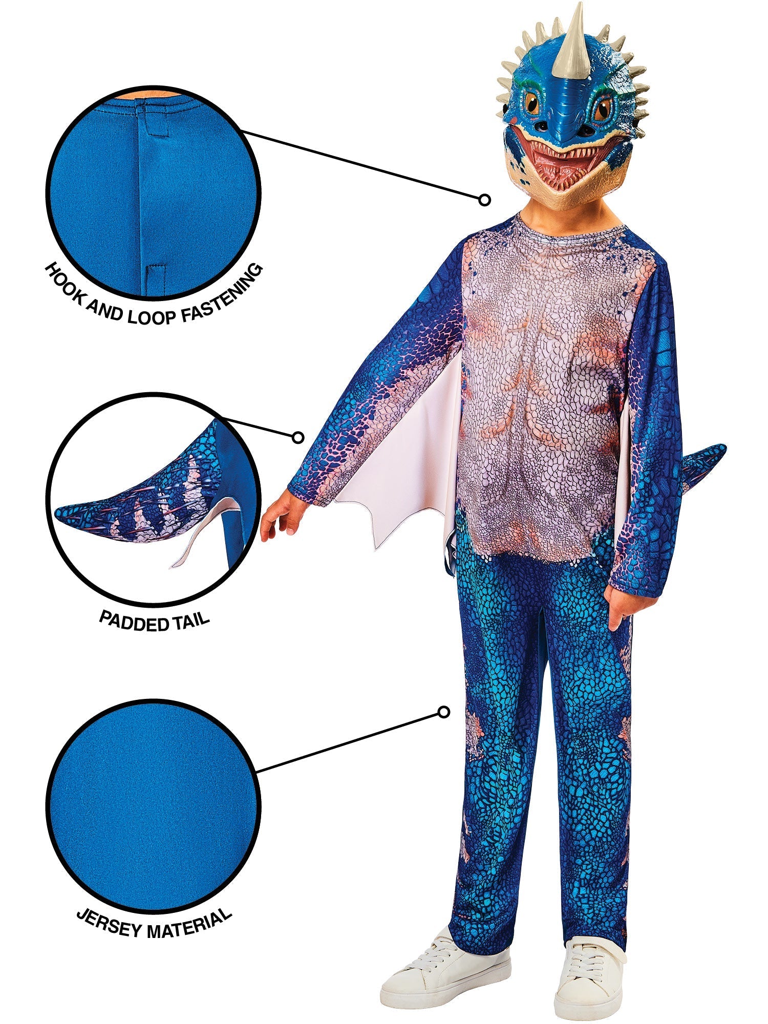 Vlieg boven de bergen als de Nadder, de iconische draak uit de gloednieuwe live-action hervertelling van How to Train Your Dragon! Dit gedetailleerde kostuum bevat een hoogwaardige bedrukte jumpsuit, aangehechte vleugels, een staart en een bijpassend masker, compleet met veel 3D-details. Perfect om de lucht in te gaan als een echte draak.