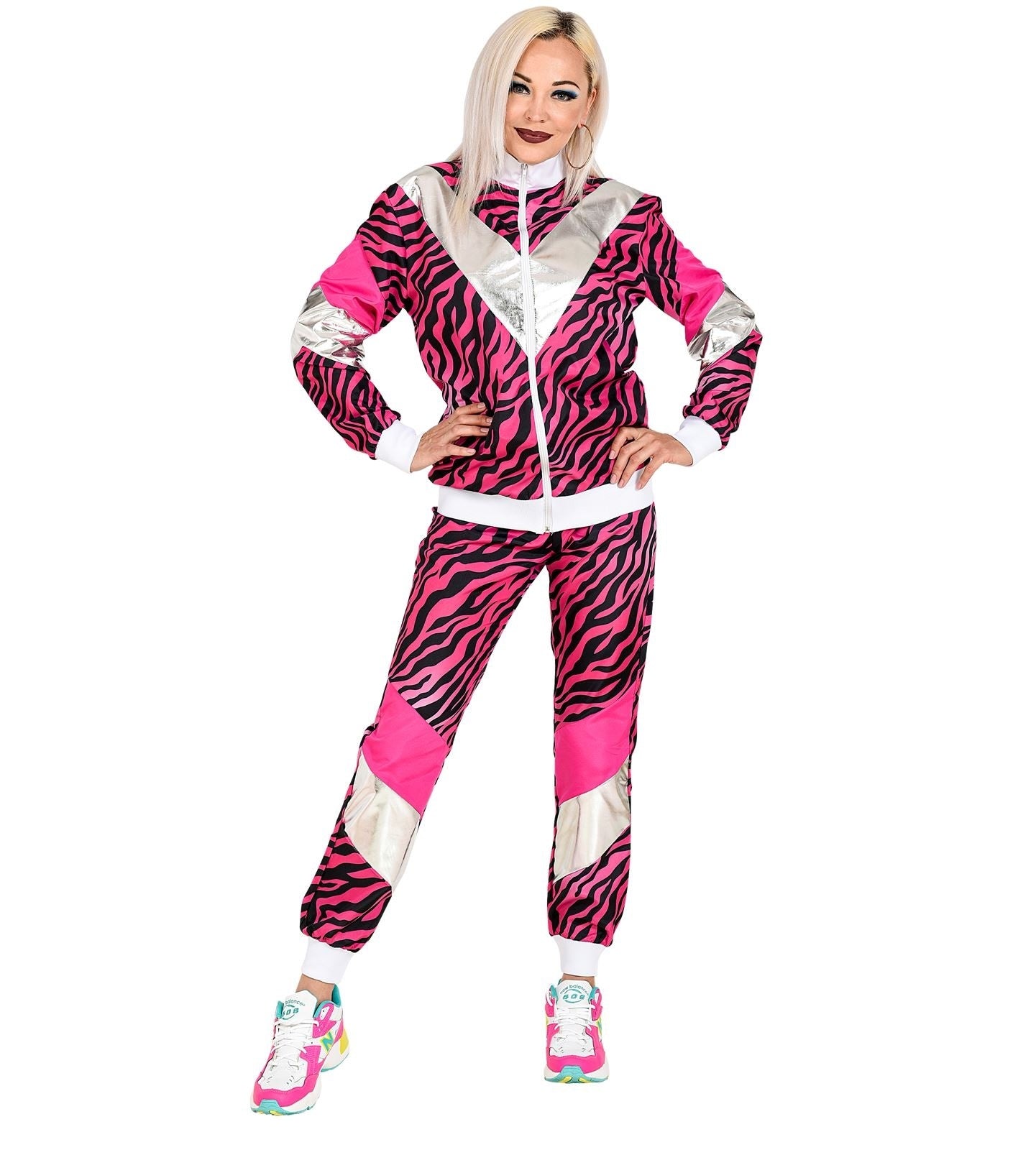Neon 80S Trainingspak Fout Roze Tijgerprint