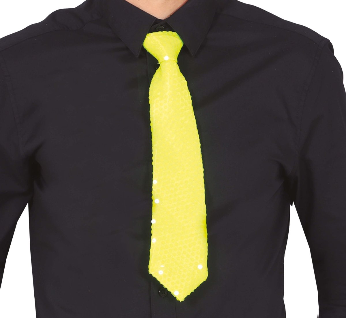 Neon Gele Stropdas Glitter 37cm