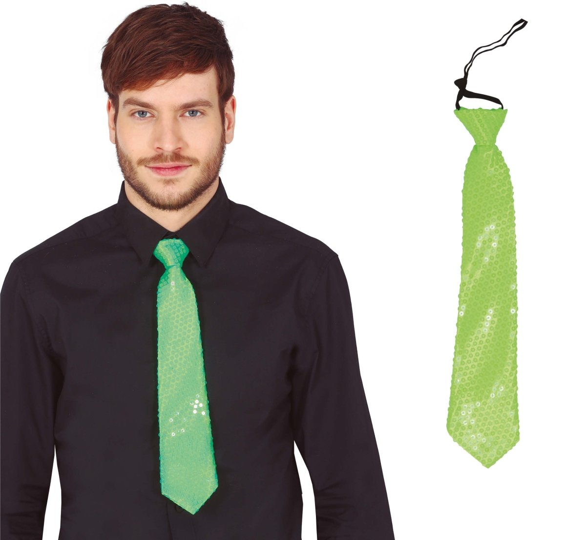 Neon Groene Stropdas Glitter 37cm
