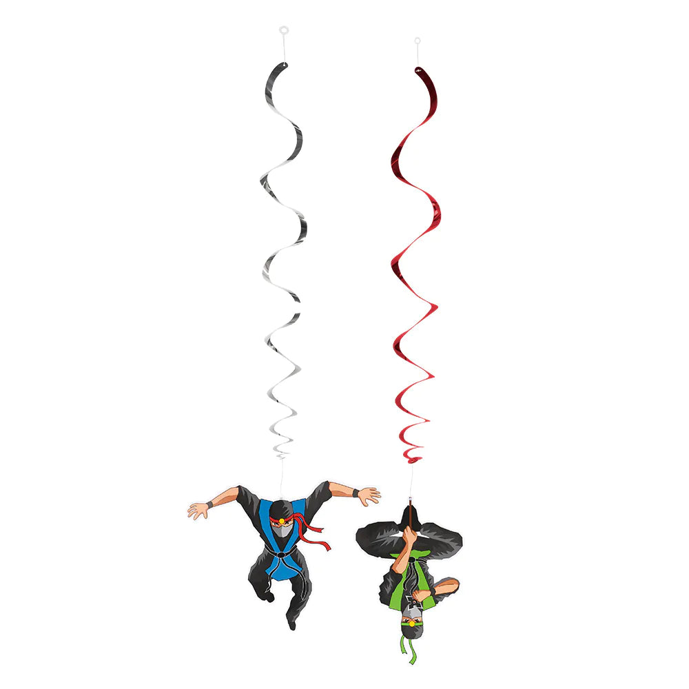 Deze stoere en speelse swirls voegen een vleugje avontuur toe aan elk feest. Met hun ninja-ontwerp en gedurfde kleuren zweven deze decoratie swirls als echte ninjasterren door de lucht. Ze zijn de perfecte manier om een kinderverjaardag om te toveren tot een geheime ninja-trainingsschool.