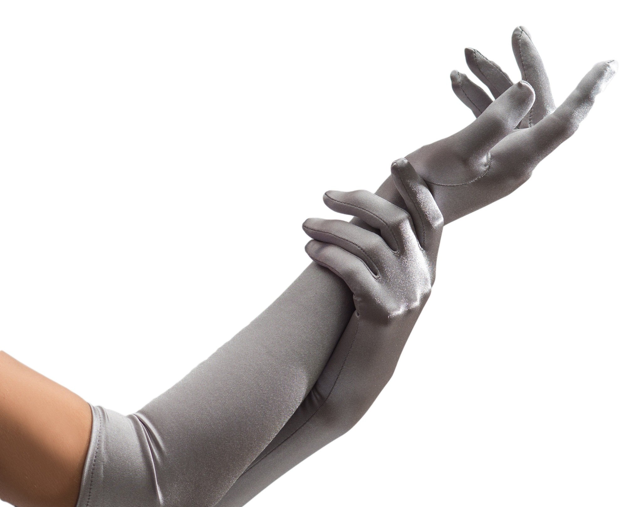 Inhoud: Nylon Handschoenen Zilver Lang - Paar - 40 cm