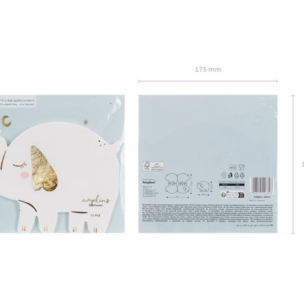 Papieren servetten Olifant in witte kleur met goudopdruk, formaat na uitvouwen ca. 32 x 27 cm, formaat na samenvoegen ca. 16 x 13,5 cm. (1 pkt / 12 st.)