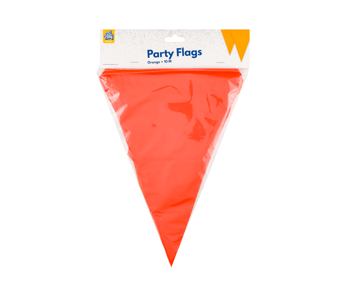 Met de party flags PE - orange uit de Basic collectie van Paper Dreams haal je een kwalitatieve oranje vlaggenlijn in huis voor een scherpe prijs. De vlaggenlijn is 10 meter lang. De vlaggetjes zijn gemaakt van Polyetheen (PE) en zijn gemakkelijk op te hangen.