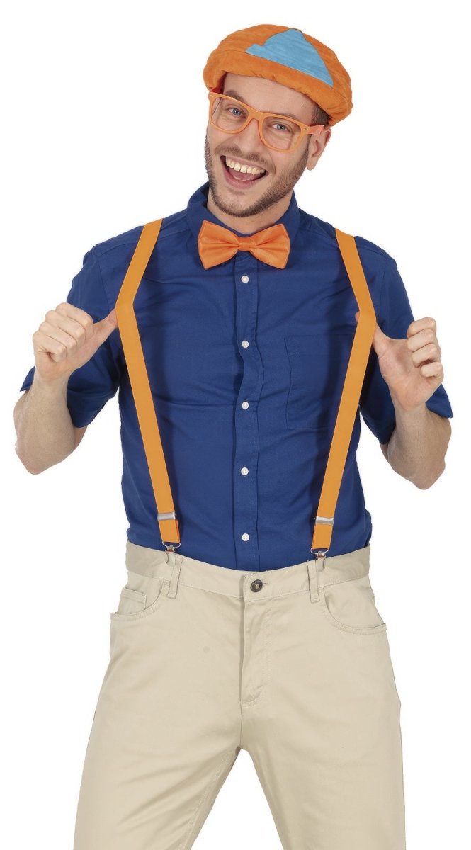 Inhoud: Pet, Strik, Bretels, Bril - Kleur: Oranje - Brandvertragend: Ja - Materiaal: Polyester, Pvc