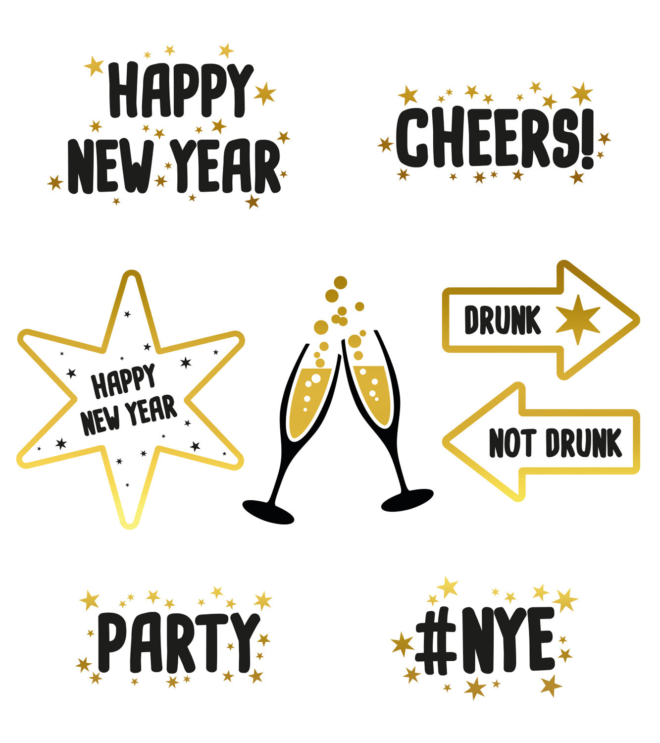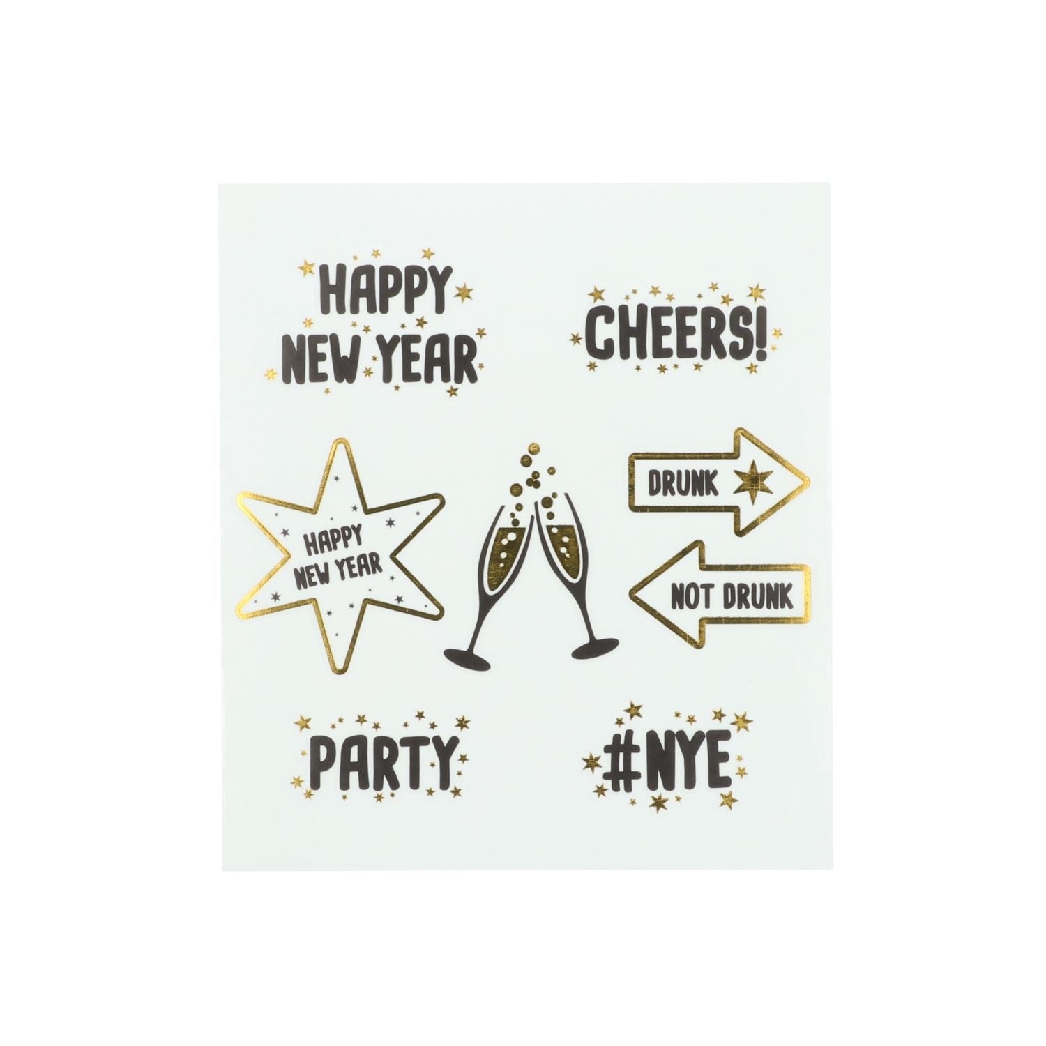 Overal feest. Ook op het raam. Raamstickers, BlackGold HNY, 8 stuks. Inhoud: 8 raamstickers. Bijvoorbeeld te gebruiken tijdens de volgende feestgelegenheid/feestgelegenheden: Oud en Nieuw. Deze 8 raamstickers zitten op 1 stickervel van 12 x 13,5 cm. De stickers zijn eenzijdig bedrukt. Idee: ze staan ook leuk op spiegels. Dit artikel is gemaakt van papier.