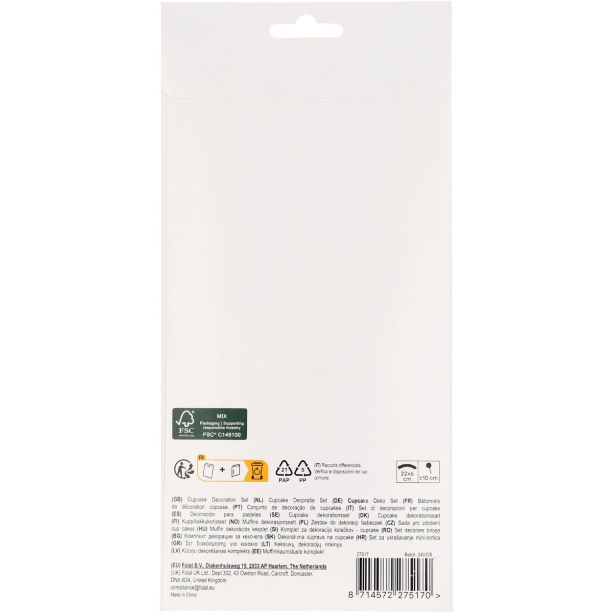 Zoete paardjes! Cupcake Decoratie Set - Happy Horses - 6 stuks. Inhoud: 6 sets, ieder bestaande uit een cupcake wikkel en een steker met papieren figuur. Bijvoorbeeld te gebruiken tijdens de volgende feestgelegenheid/feestgelegenheden: Kinderfeestje, Verjaardag, Themafeest. Alles wordt nog lekkerder met deze leuke paarden cupcake versiering: 6 cocktailprikkers van ongeveer 10 cm met op ieder een paardje, paardrijpaardrijcap of bloemetje en 6 roze wikkels van ongeveer 22,5 cm lang met daarop een roze hoefijzer. Deze cupcake decoratie set hoort bij de Happy Horses collectie van Folat. Dit artikel is gemaakt van papier.