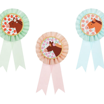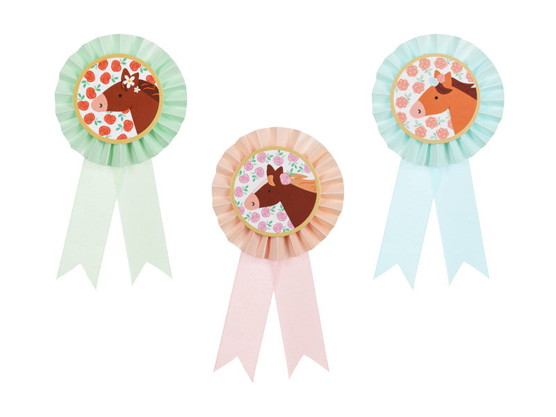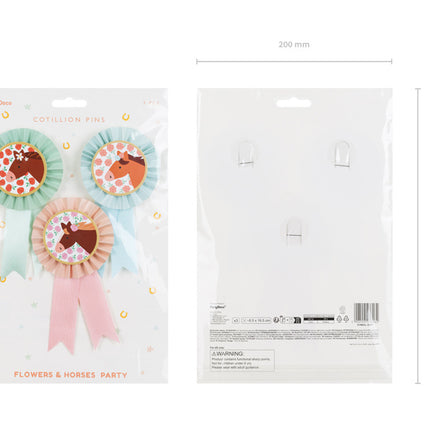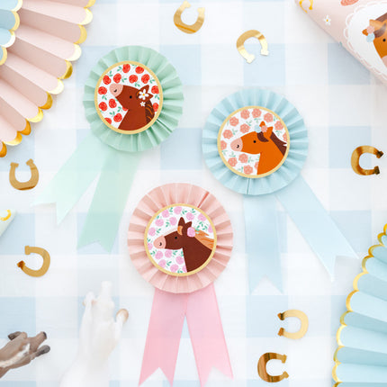 Paardenrozetten, 3 stuks, papier met linten, kleurenmix, afmeting ca. 8,5 x 16,5 cm.