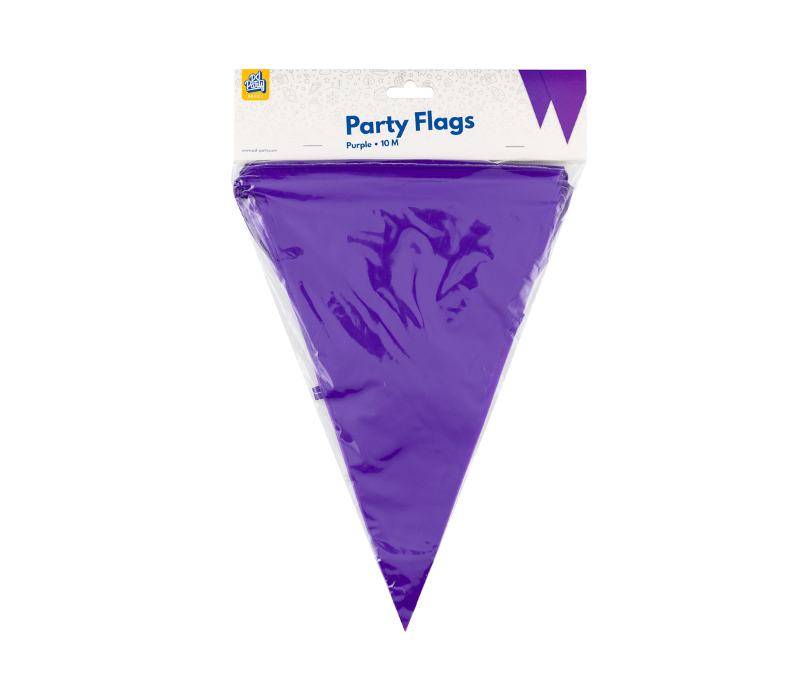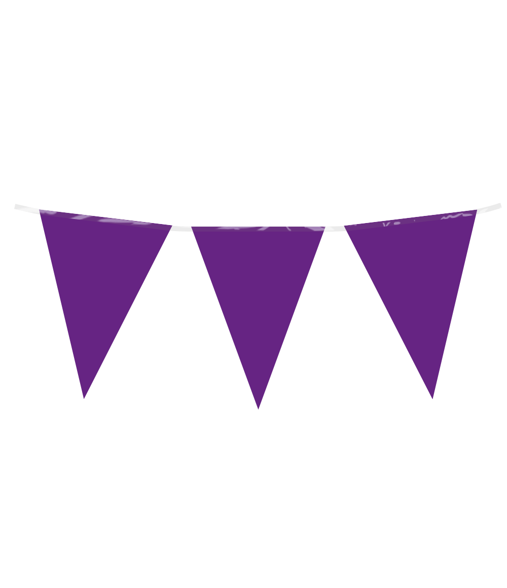 Met de party flags PE - purple uit de Basic collectie van Paper Dreams haal je een kwalitatieve paarse vlaggenlijn in huis voor een scherpe prijs. De vlaggenlijn is 10 meter lang. De vlaggetjes zijn gemaakt van Polyetheen (PE) en zijn gemakkelijk op te hangen.