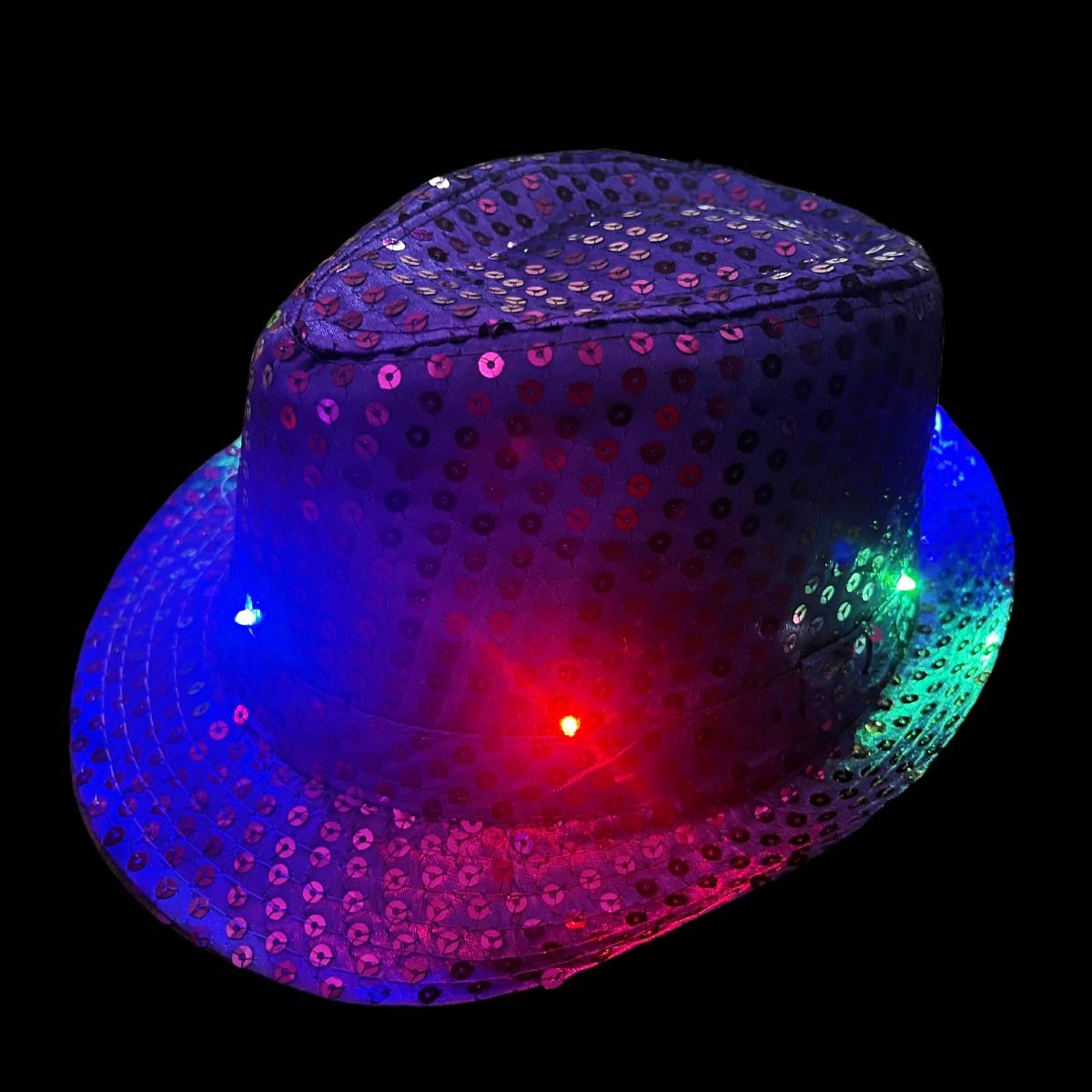 Maak elke outfit compleet met deze sprankelende paarse paillettenhoedjes! Elk hoedje is versierd met glinsterende pailletten en beschikt over ingebouwde verlichting voor een extra feestelijk effect. Ideaal voor themafeesten, carnaval, festivals of oudejaarsavond.
