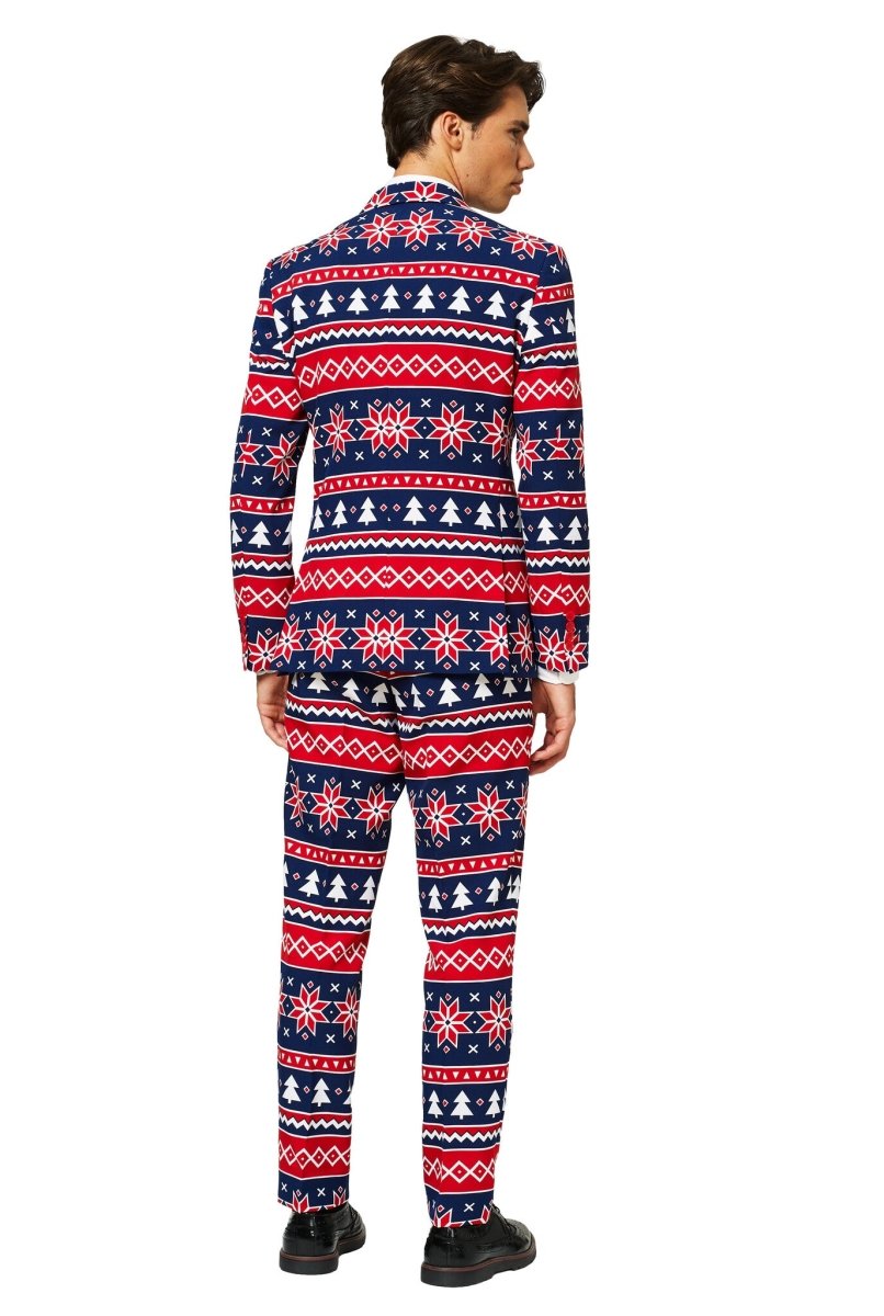 Fan van kersttruiprintjes, maar geen fan van jeukend wol? Wij snappen je. Dit kerstpak heeft een grappig patroon als klassieke kersttruien, is zo comfortabel als je favoriete pyjama en heeft de stijlvolle pasvorm als een op maat gemaakt pak. Goede combi, toch? Verwen jezelf deze kerst. Je verdient het.