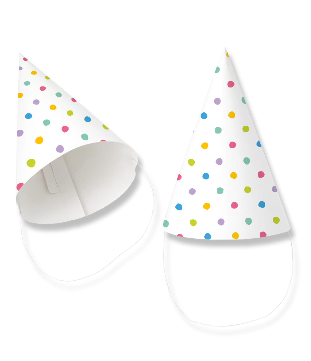 De feesthoedjes zijn licht van gewicht, comfortabel en dankzij het handige elastiek geschikt voor feestvierders van alle leeftijden. Combineer ze moeiteloos met de Party Dots plates, cups, napkins, balloons en confetti voor één stijlvol en samenhangend feestthema.