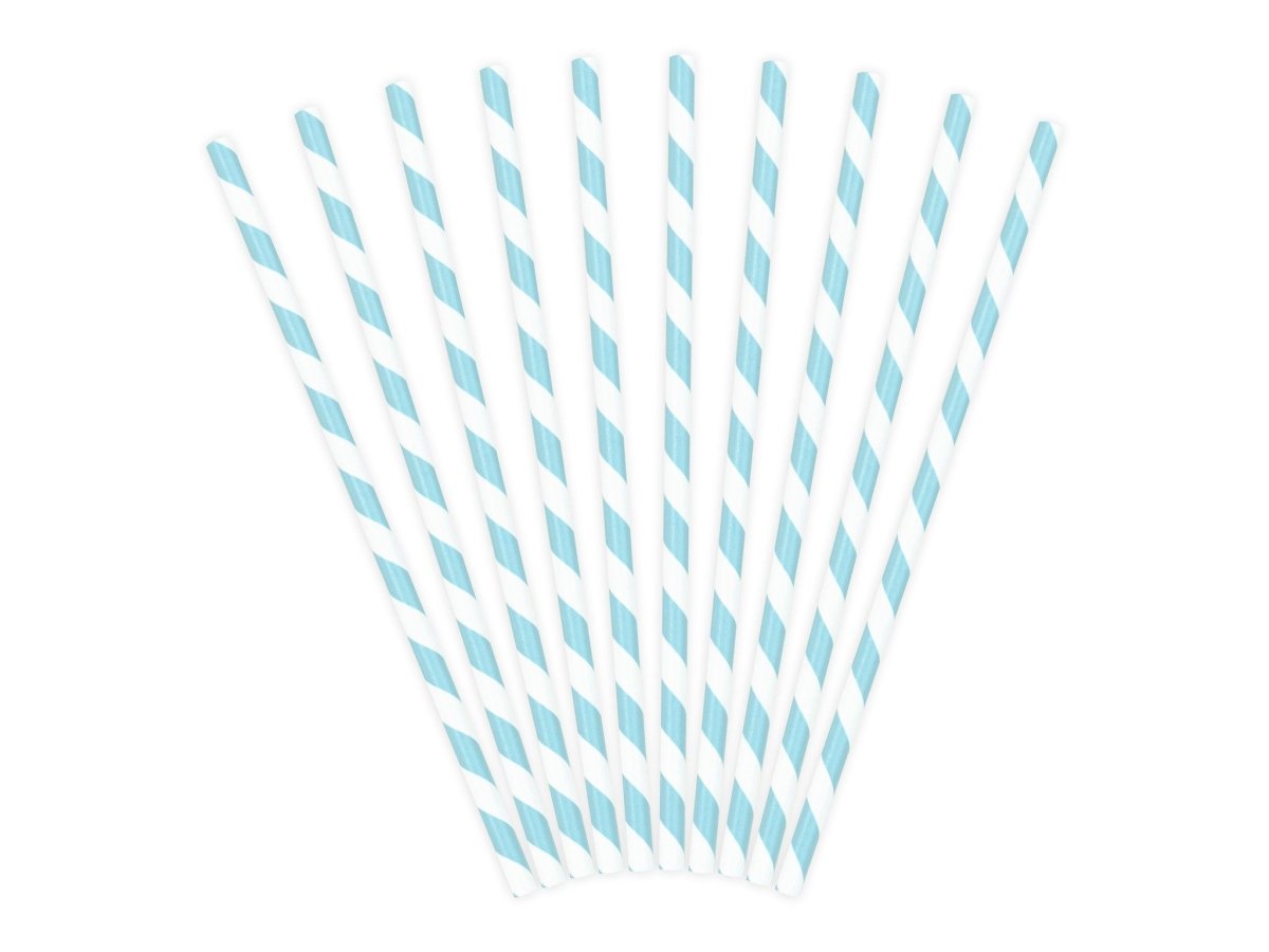 Inhoud: Papier rietjes, hemelsblauwe met geheld, witte strepen, lengte ongeveer 19,5 cm. (1 PKT / 10 st.)