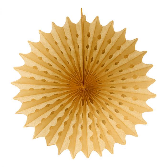 Honeycomb Waaier Goud - 45cm. Inhoud: 1 Honeycomb. Kleur: Goudkleurig. Bijvoorbeeld te gebruiken tijdens de volgende feestgelegenheid/feestgelegenheden: Themafeest, Verjaardag, Kinderfeestje. Deze decoratie is 45 cm. Een honeycomb is gemaakt van papier.