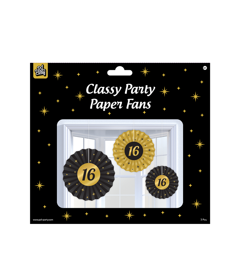 Papieren Waaiers 16 Jaar Set 20-40cm 3-delig
